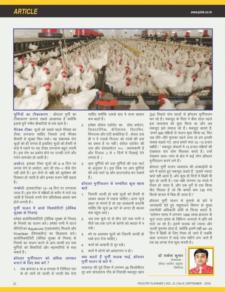 ब्रायलर मुर्गीपालन कैसे करें ? लेख ,पोल्ट्री प्लानर पत्रिका के सितम्बर-१९ अंक में प्रकाशित , लेखक – राकेश कुमार.
