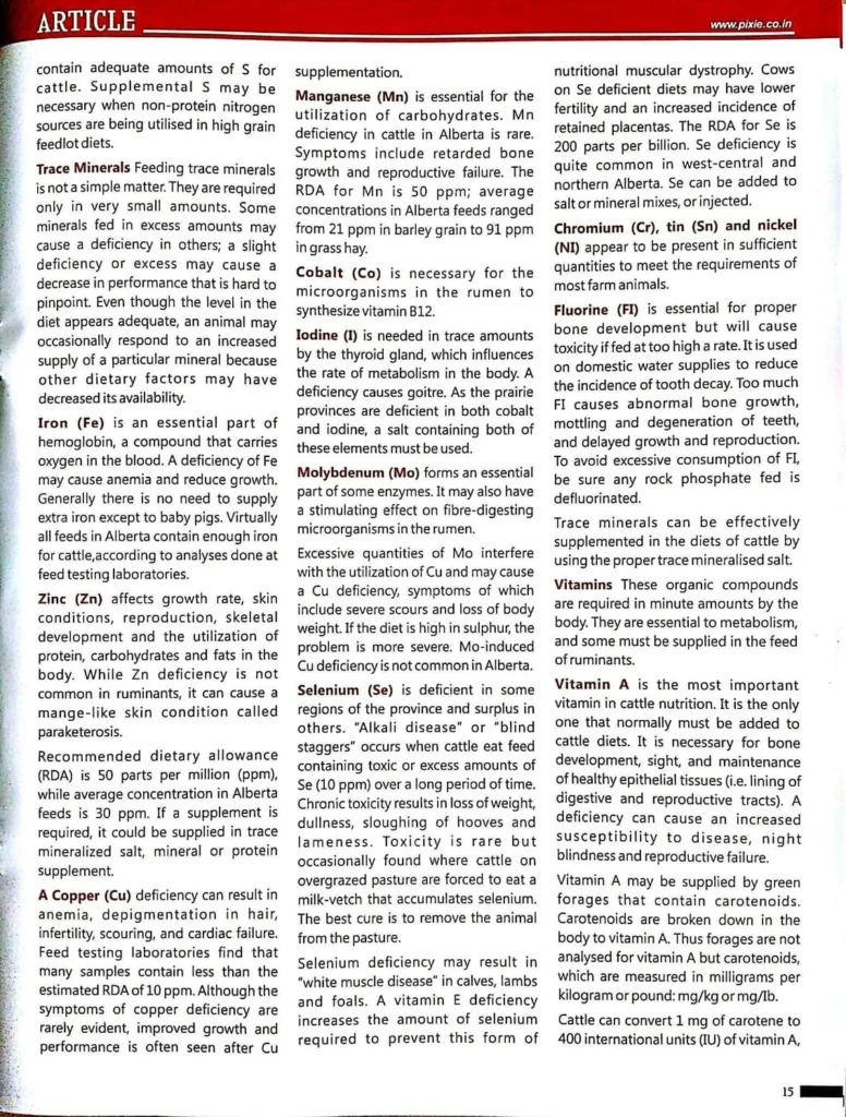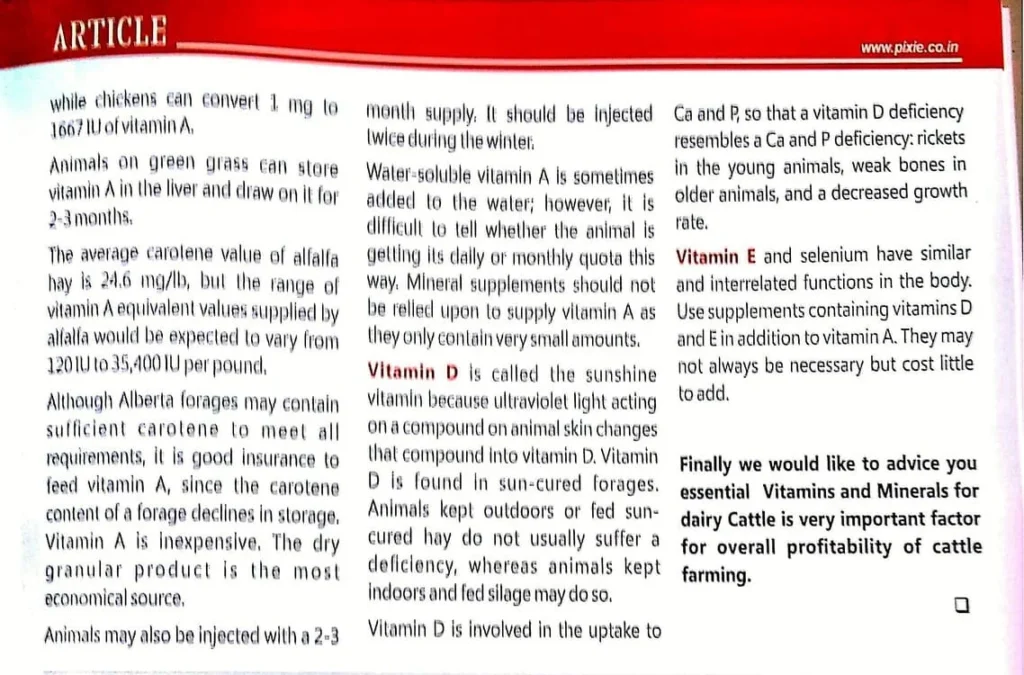 Importance of Vitamins & Minerals for Dairy Cattle-Published in Dairy Planner Magazine – August ,2016 .The article is written by – Mr. Rakesh Kumar.