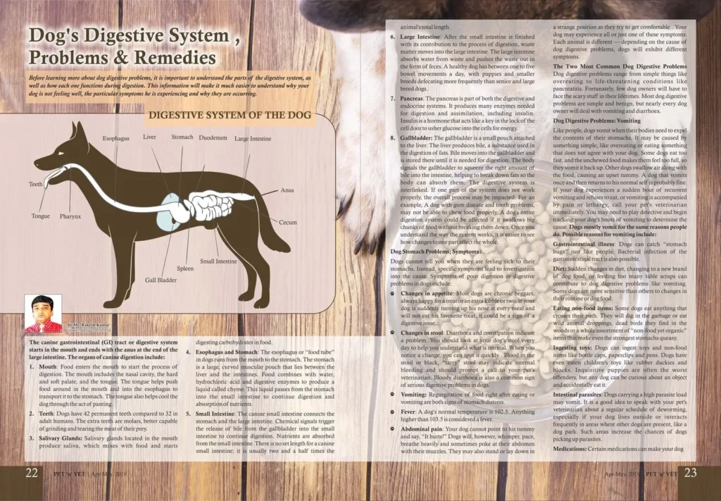 Dog’s Digestive System Problems & Remedies-Published in Pet ‘n’ Vet Magazine :Apr-May-19