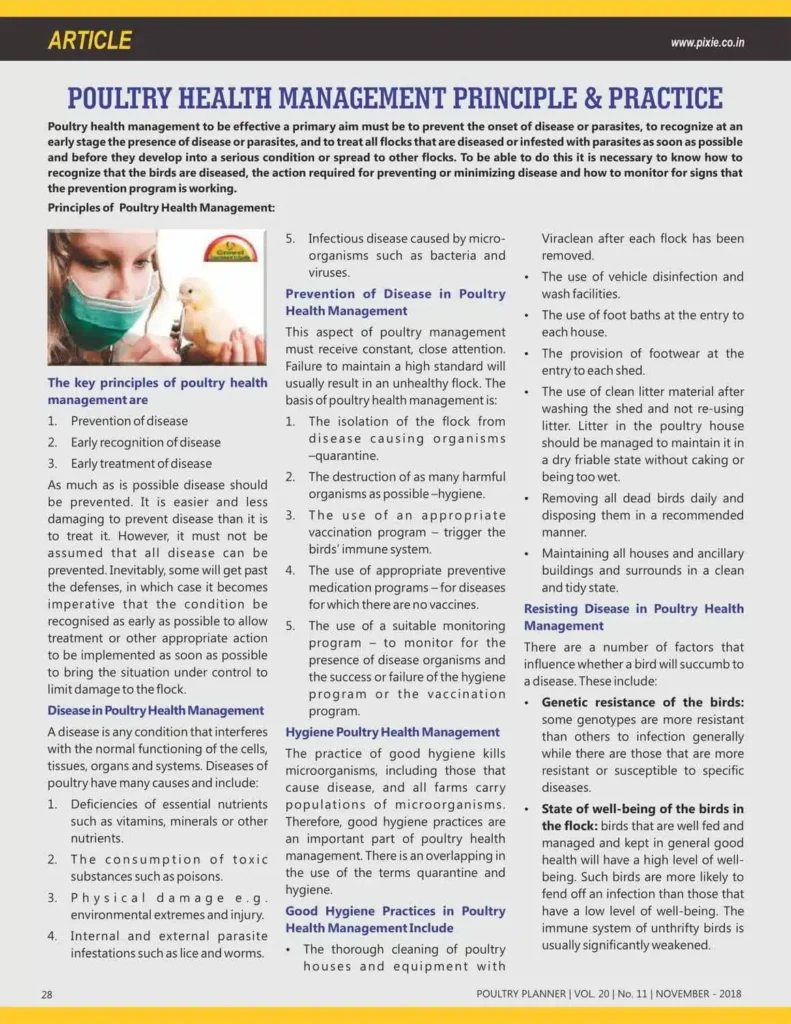 Poultry Health Management Principle & Practice , Article Published in Poultry Planner- November ,2018