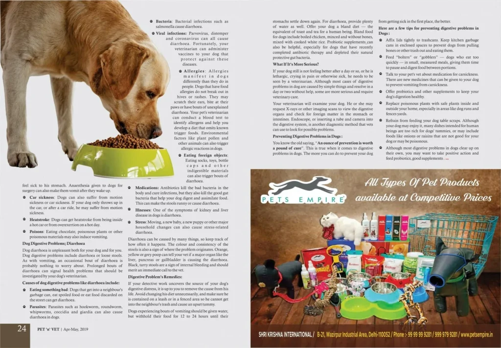Dog’s Digestive System Problems & Remedies-Published in Pet ‘n’ Vet Magazine :Apr-May-19 .The article is written by – Mr. Rakesh Kumar.