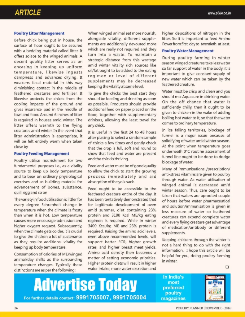 Poultry Farming in Winter- Article Published in Poultry Planner