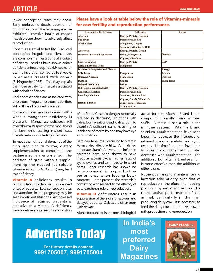 Vitamins & Minerals for Cow Fertility Article Written by Rakesh Kumar in Dairy Planner Magazine-Jan 2017